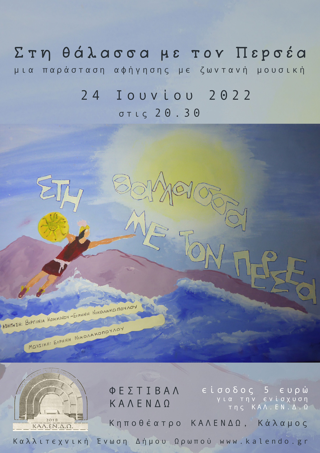 Αρχαίοι μύθοι, παραδοσιακά παραμύθια και τραγούδια για την περικεφαλαία που σε κάνει αόρατο, το κοφτερό σπαθί και την ασπίδα, για σανδάλια φτερωτά κι ένα σάκο μαγικό! Ιστορίες που συναντιούνται για να εμπνεύσουν τον Περσέα να σηκωθεί, με τα τέρατα να τα βάλει και την Ανδρομέδα να ερωτευτεί.