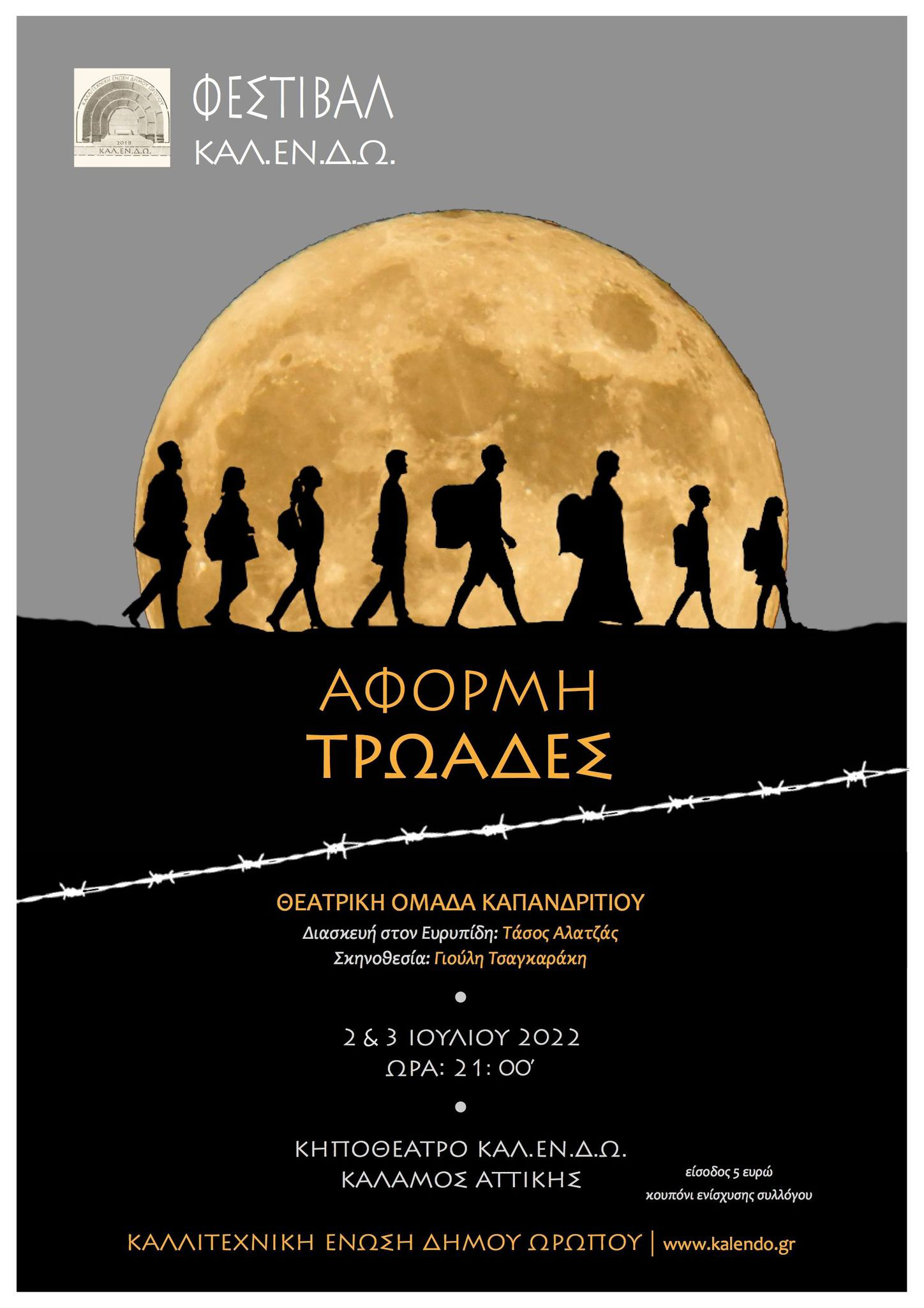 Η παράσταση αφορμή…Τρωάδες δείχνει τις επιπτώσεις του πολέμου στον ψυχισμό των αιχμάλωτων γυναικών. Γυναίκες που από την ασφάλεια του σπιτιού τους βρίσκονται στο δρόμο. Έναν δρόμο άγνωστο, αβέβαιο και τρομακτικό.